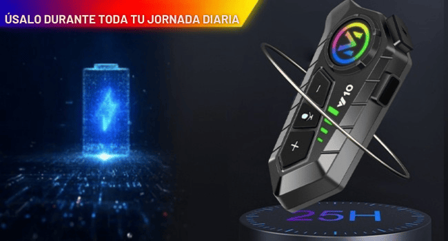 Carga una sola vez y úsalo durante toda tu jornada. Perfecto para motorizados que hacen delivery o viajan muchas horas al día sin preocuparse por quedarse sin audio.