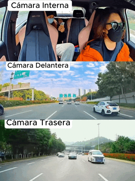 ✔️ Graba todo: delante, dentro y detrás del vehículo.