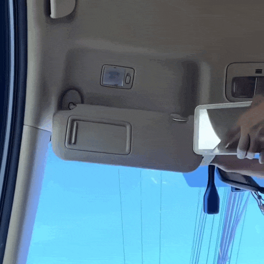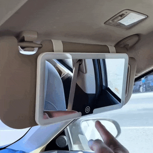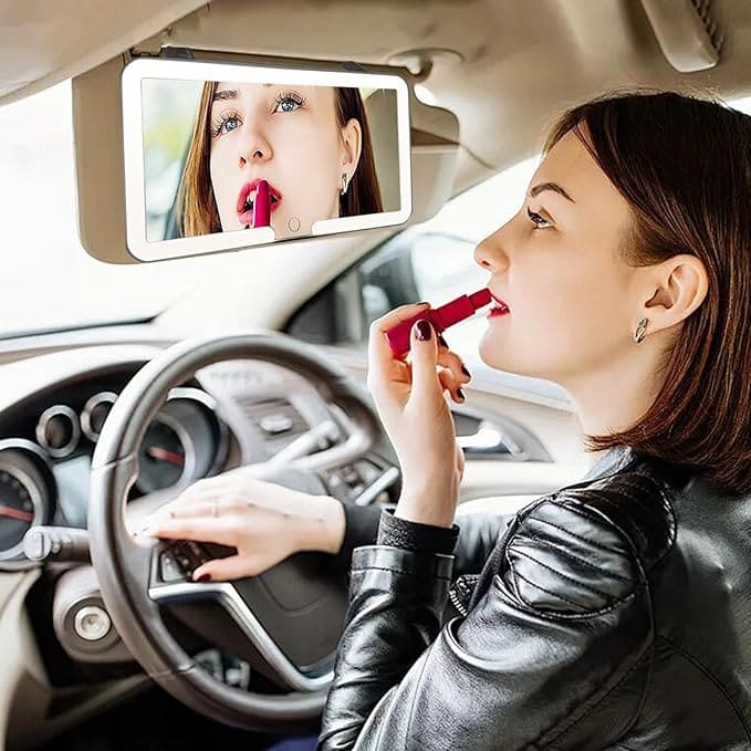 Diseño compacto y práctico que se sujeta firme a la visera del carro, ideal para maquillarte mientras esperas, estás en el tráfico o antes de una cita.