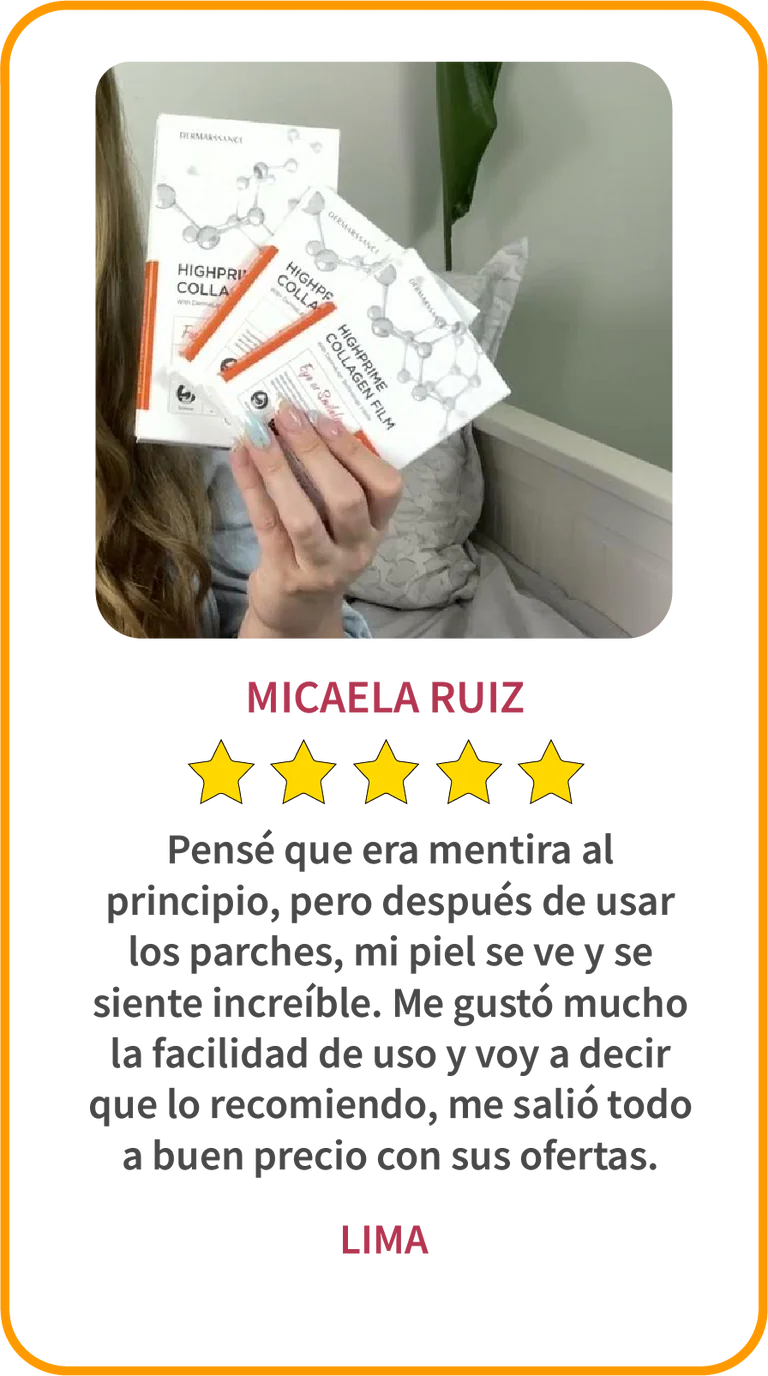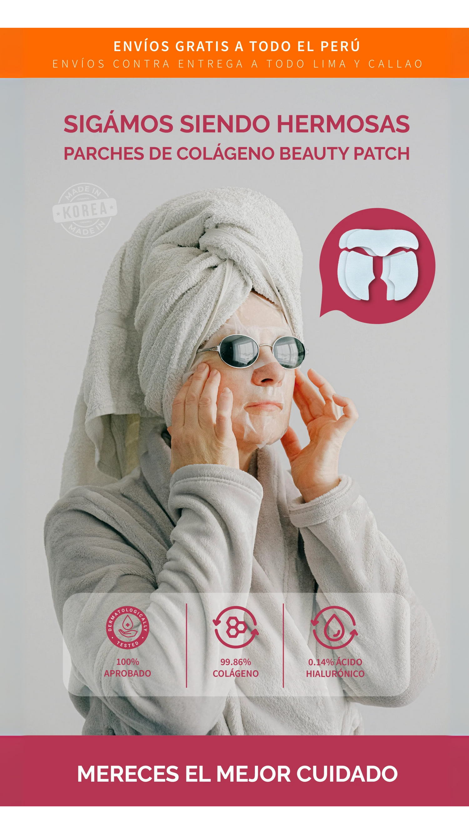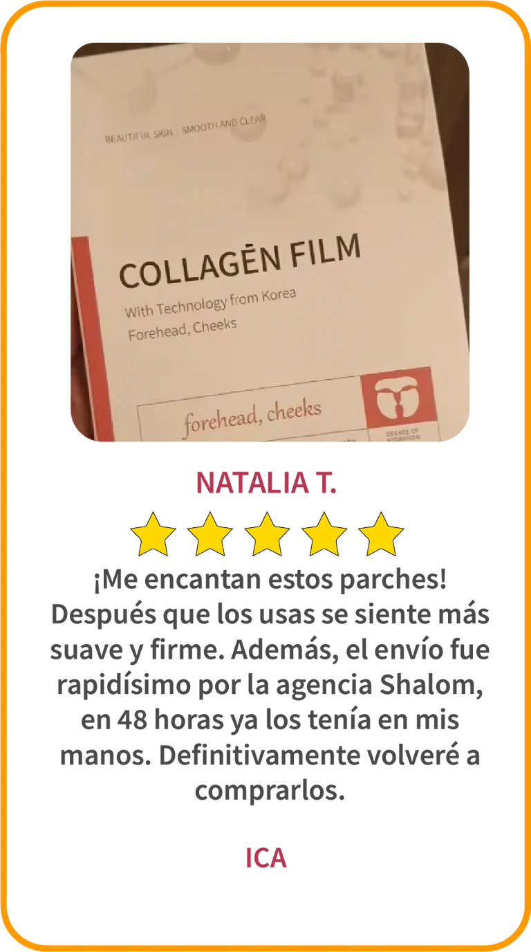 Son 18 parches de colágeno hidrolizado con tecnología coreana y agua de rosas que se absorben rápido, dejando la piel suave, luminosa y con menos arrugas.