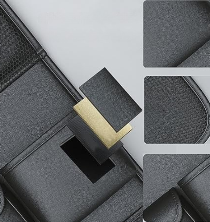 Fabricado en cuero PU de alta calidad, resistente y fácil de limpiar. Da a tu auto un toque sofisticado mientras se mantiene impecable con solo pasar un paño.